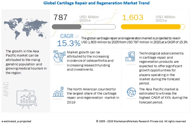 The global cartilage regeneration market is projected to reach USD 787 Million by 2020 from USD 1,603 Million in 2016, growing at a CAGR of 15.3%.