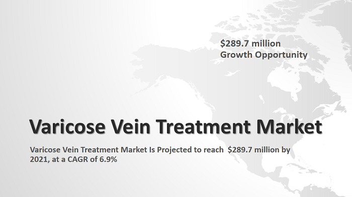 The varicose vein treatment market is projected to reach to reach $289.7 million by 2021 from $207.9 million in 2016, growing at a CAGR of 6.9% from 2016 to 2021. This report covers the market across two major geographies, namely, North America and Europe.