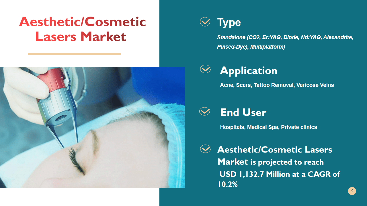 Growing adoption of noninvasive procedures, changing lifestyles, rising incidence of skin damage, reduction in procedural costs, and rise in medical tourism devices are the major factors driving the growth of the aesthetic lasers market. However, the rising adoption of energy-based devices and low focus of market players on aesthetic/cosmetic devices are restraining the growth of this market.